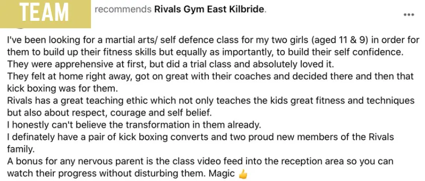 facility in the heart of East Kilbride, located at 6 Brunel way, G75 0LD. Professional world champion athletes producing world-class facilities to help build the future champions in your area. Taking on children from 3 years old. Look around and find out how we can help you today. At Rivals Gym, we bring people together and build various strong relationships within our community, something which we already strive in. We aim to keep delivering fun and innovative ideas empowering lives through the aspects of the sport of boxing and martial arts